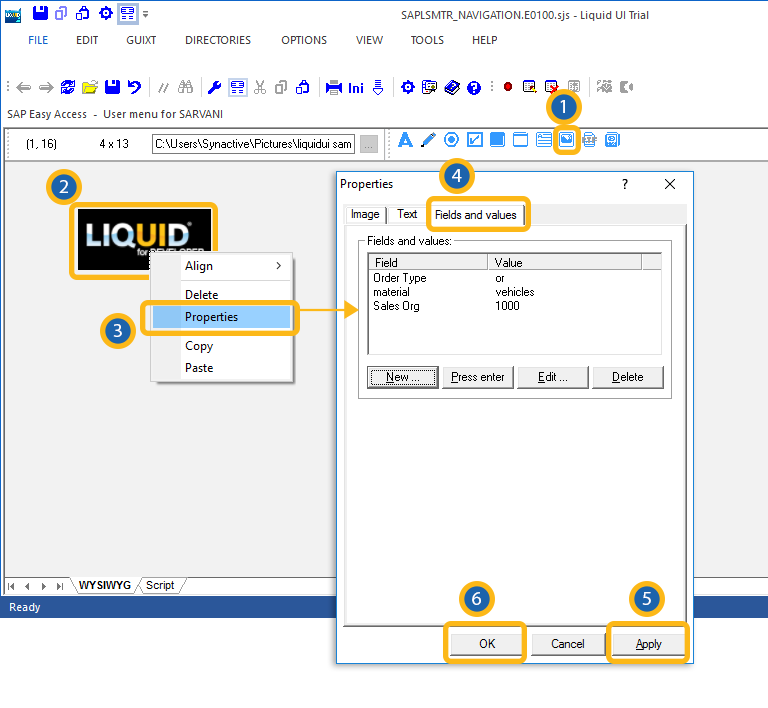 - On Toolbar: The image will be displayed on the toolbar.