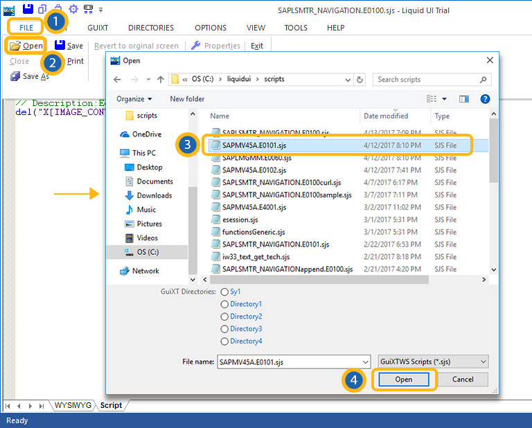 Note: Script files cannot be saved in the trial version of Designer. To save scripts, you must have a valid license both for GuiXT and for Designer.