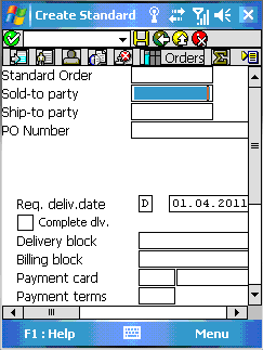 In this section, we will demonstrate a sample use case using the Mobile client. We will not use a Liquid UI Server for the example, but the process is essentially the same either with or without a Liquid UI Server. The only real difference is that the Server would house the scripts and the connection would need to point to the Server instead of directly to the SAP system. When a direct connection to SAP is used, only SAP native screens can be displayed - users cannot apply any Liquid UI customizations. In the SAP Navigation screen, type a transaction into the command box. In our example, we will use the tcode 'VA01'.