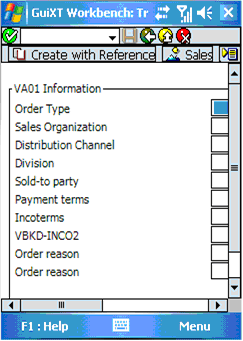 In this section, we will demonstrate a sample use case using the Mobile client and a Liquid UI Server. In this example, we can apply Liquid UI screen customizations by means of the scripts housed on the Server. In the SAP Navigation screen, type a transaction into the command box. In our example, we will use the tcode 'VA01'.