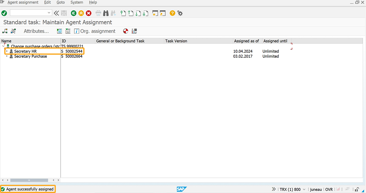 5. This adds a new agent to the task, along with a success message that confirms the agent assignment.