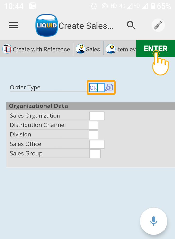1. Navigate to the VA01 transaction, and enter OR in the Order Type Input Field; click ENTER.