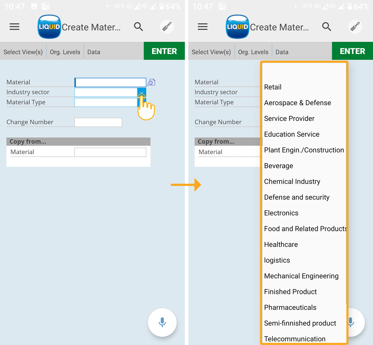 2. Click on the Industry sector Input Field sidebar to display the respective dropdown list, as shown below.