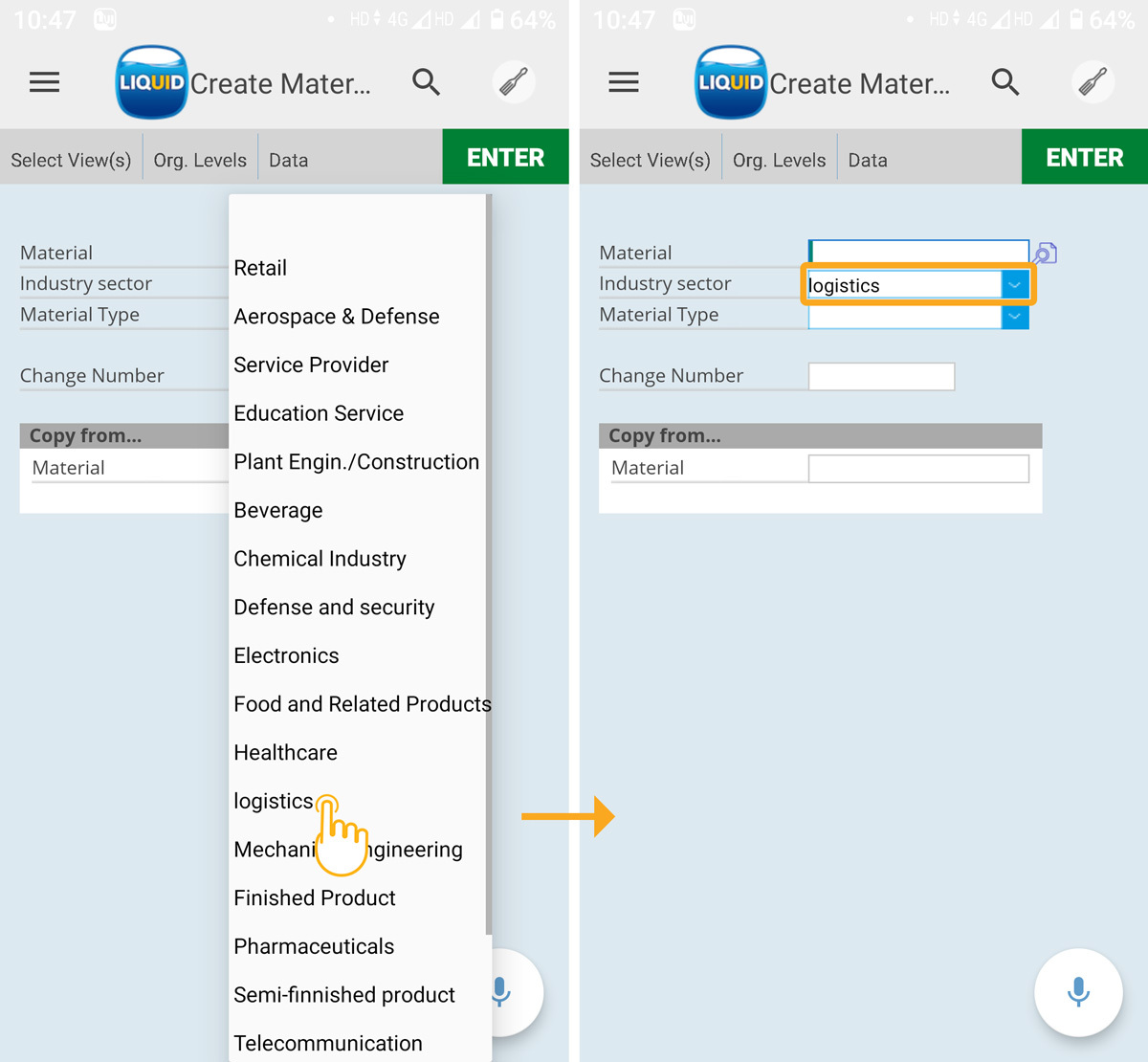 3. Select the desired industry from the list to save your selection. In the following example, we have selected the logistics sector.