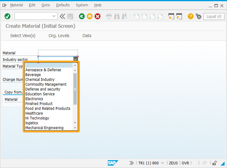 The Combo box is also called the Dropdown list. In SAP GUI, a dropdown list appears, as in the following example from the MM01 transaction.