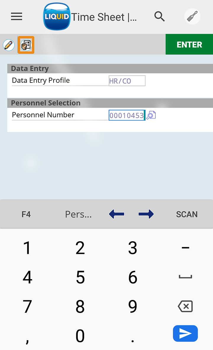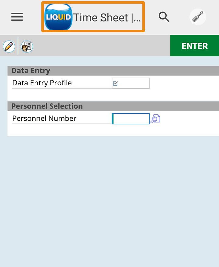 - Enter the values for Data Entry Profile and Personnel Number Input Fields and click the Settings icon, as shown below: