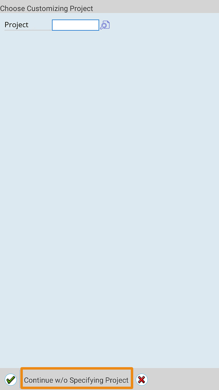 - Place the cursor on the project field and click on Continue w/o Specifying Project.