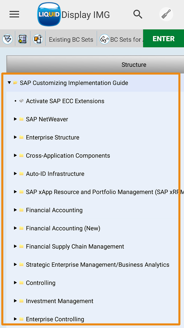 - You will be navigated to Display IMG transaction, where you can find a tree control as shown below.