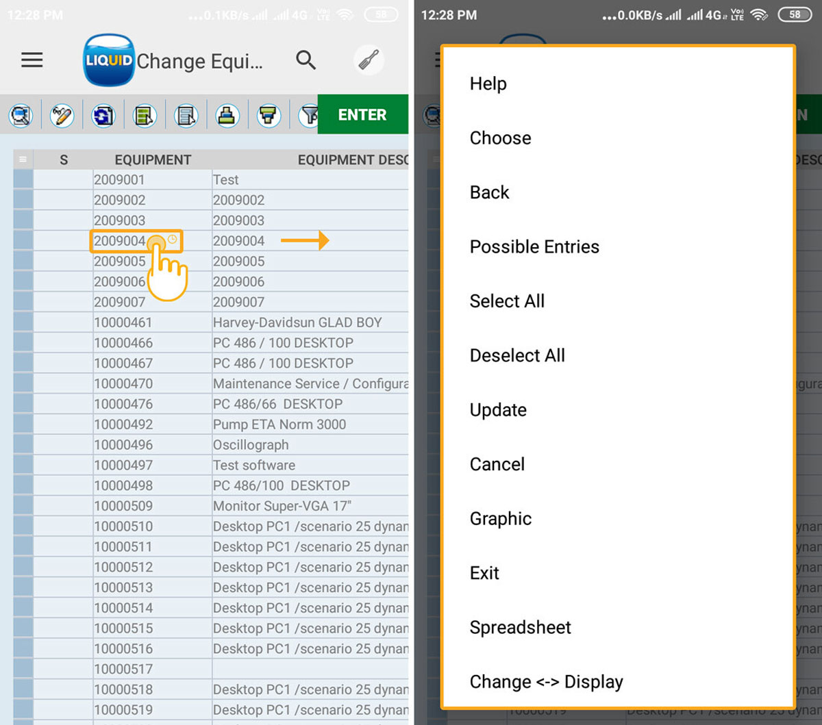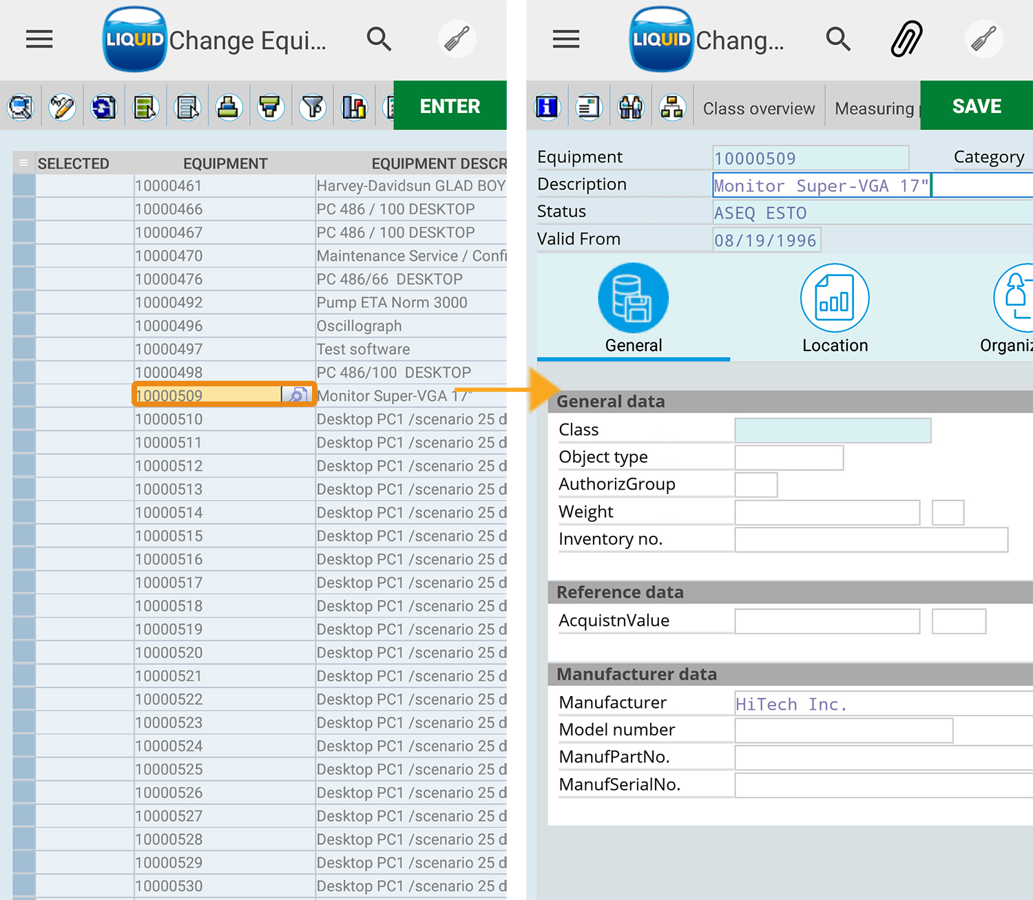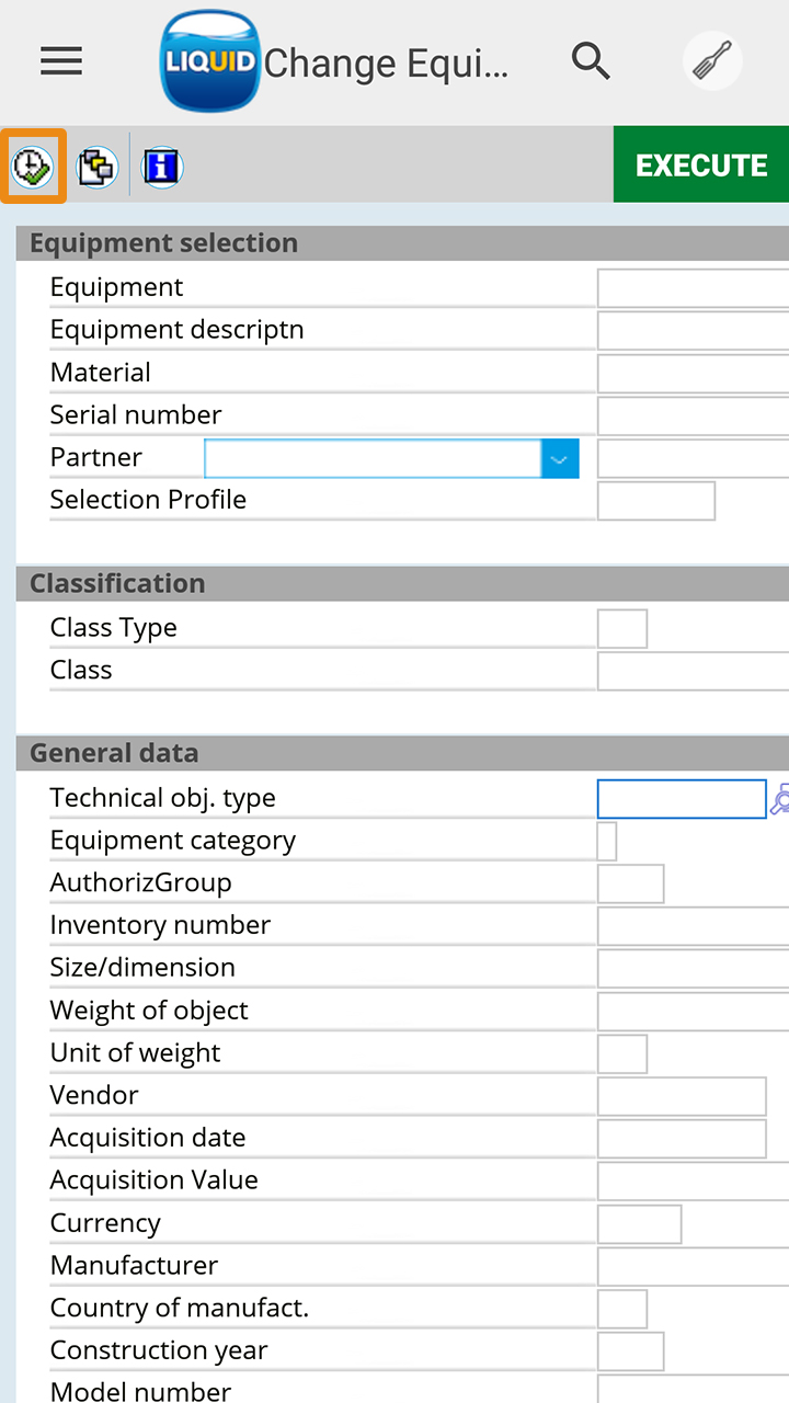 - Navigate to IE05 transaction in your Liquid UI for Android App and click execute.