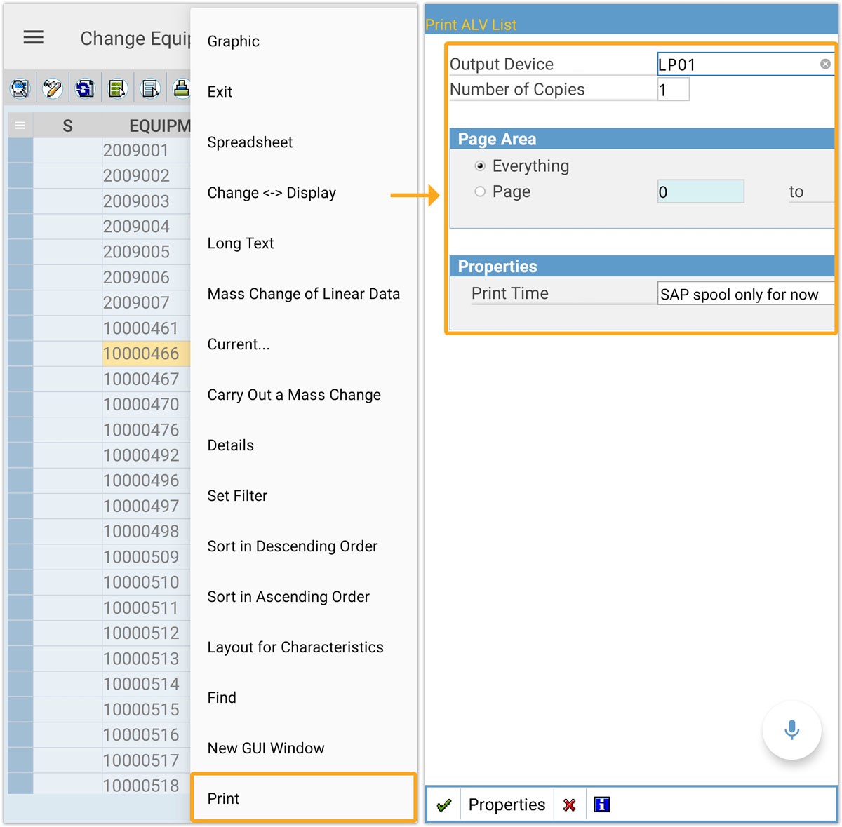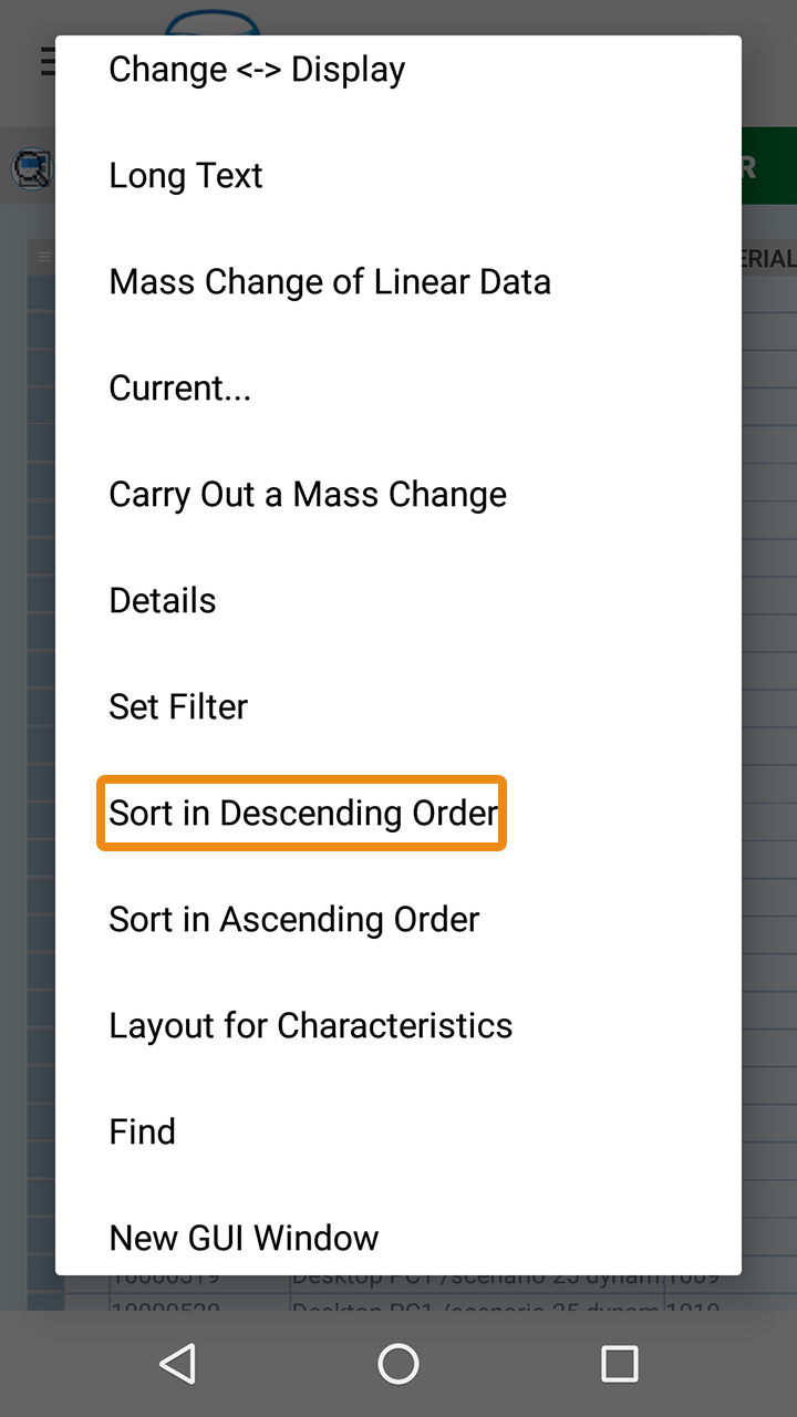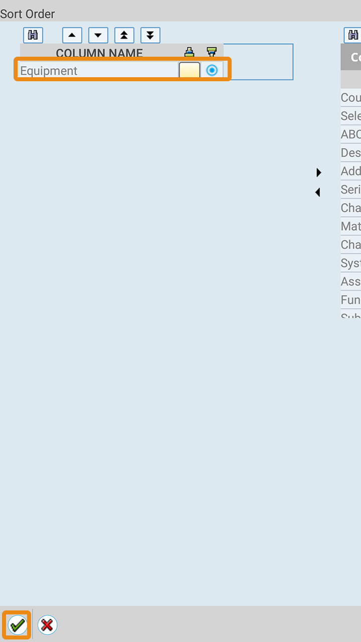 - You can scroll up the context menu to view list functions such as Sort, filter, and print avoiding extra programming on the grid control screen. Select the Sort in Descending Order option to sort the Equipment column values in descending order.