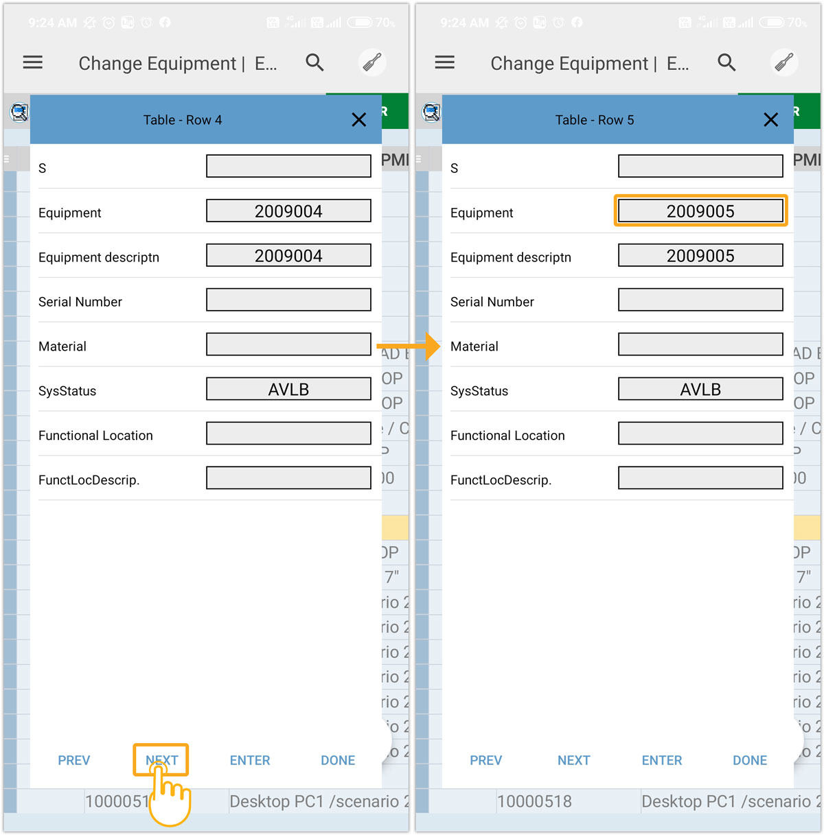 - To find responses for the user actions, double-click on any grid cell under the Equipment column, which will navigate you to Change Equipment: General Data screen.