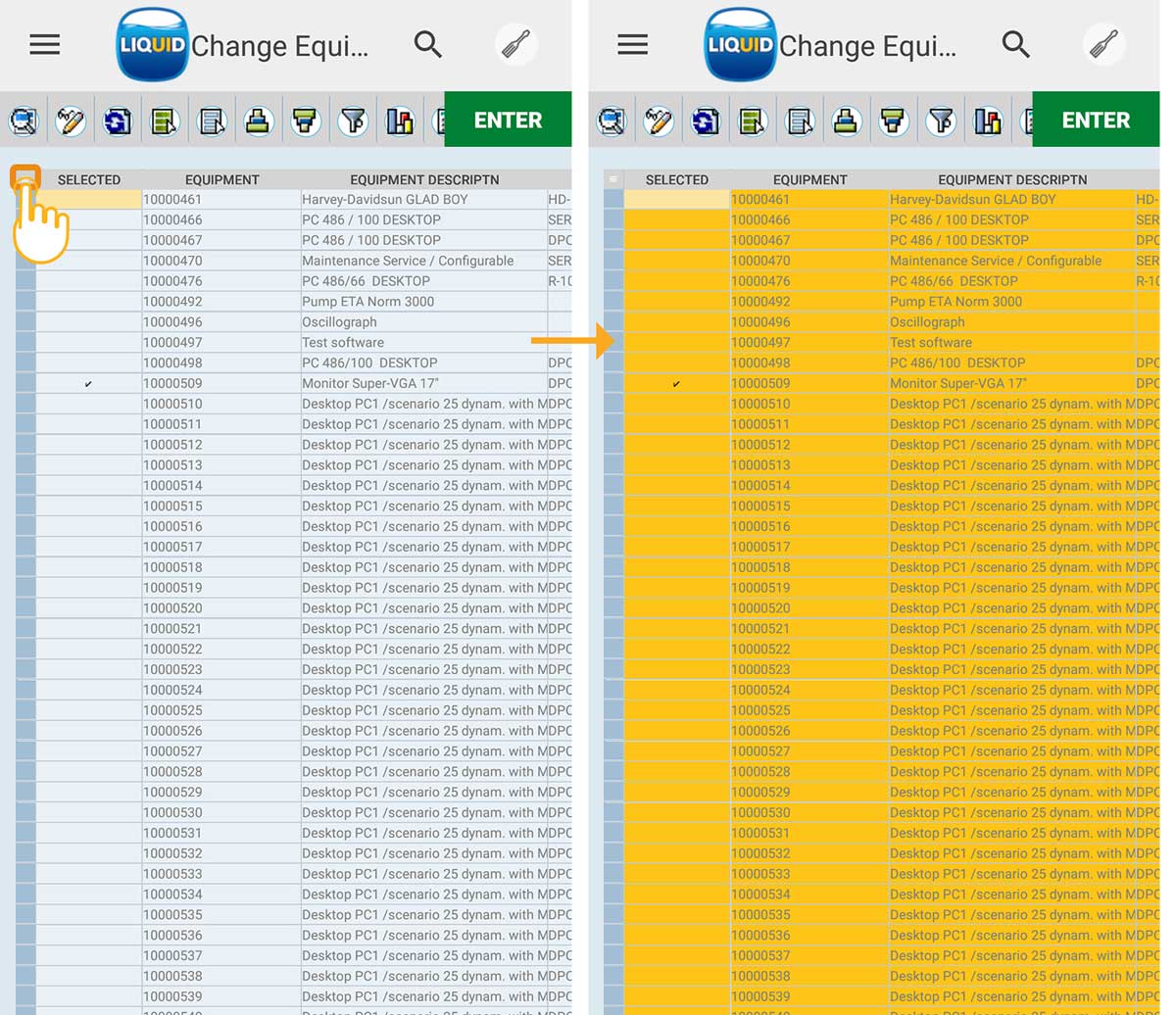 Liquid UI for Android enables you to view all the grid controls as you see in your SAP GUI. The ALV Grid Control is a flexible tool to display lists. Here you can see a toolbar, a title, and an output table displayed in a grid control.