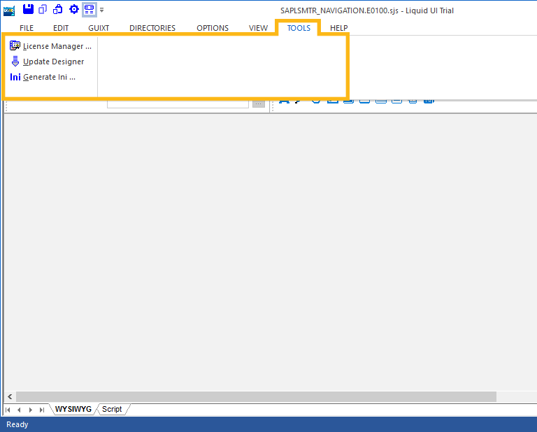 Note: Save your work before clicking this option. Designer update will over-write the current version and any unsaved work will be lost. - Generate Ini...