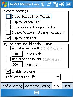 In addition to the basic and advanced settings previously explained, the profile also has a tab containing some miscellaneous settings. These appear as shown below