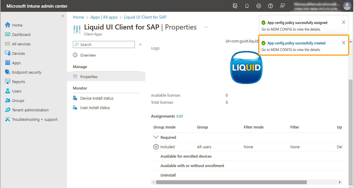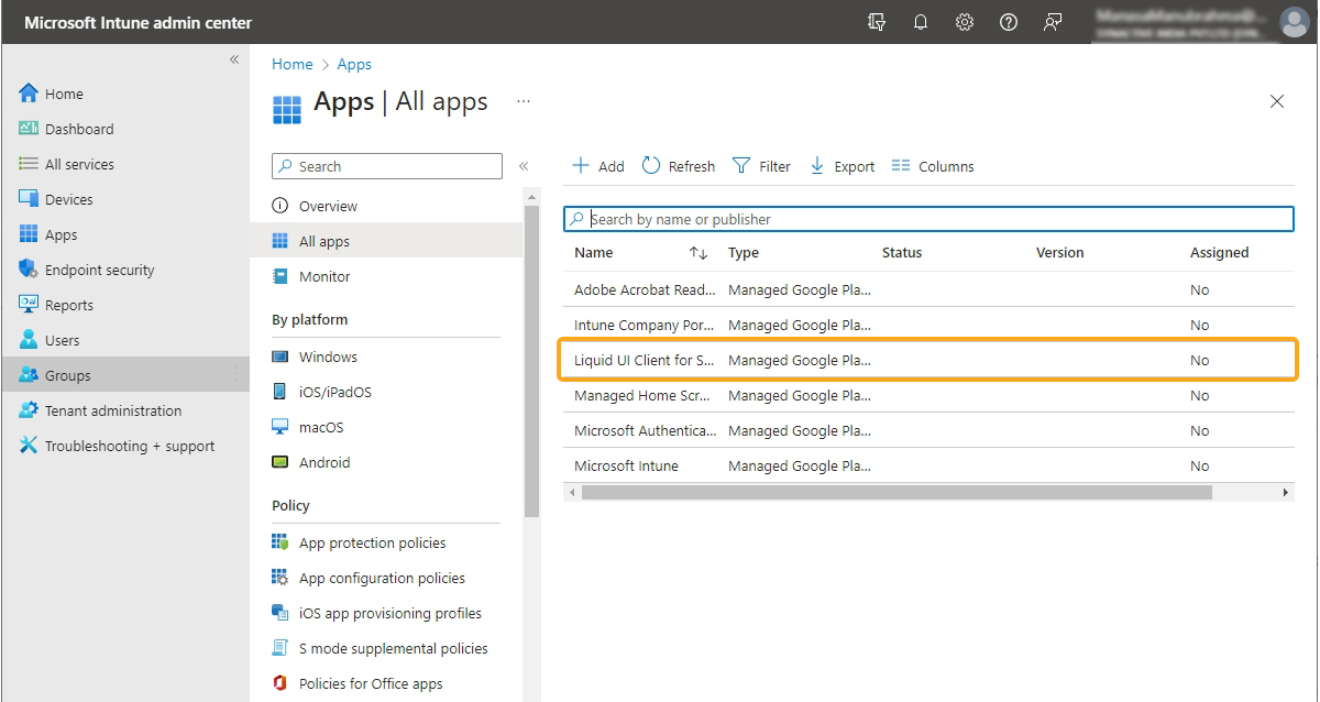 Liquid UI app installation and management can now be simplified through any MDM software, providing efficient access to the application on all the associated devices. In this article, we'll demonstrate how to assign and configure Liquid UI through Microsoft Intune. We'll guide you through the following steps.