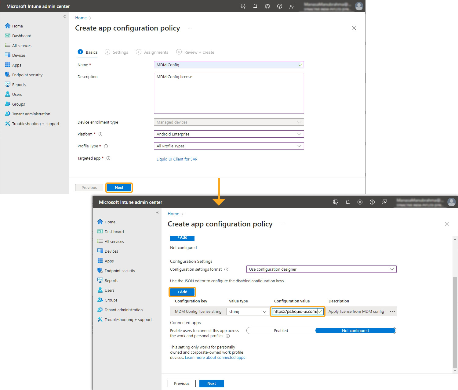 Follow the below sequence to push the Liquid UI Portal License through Intune.