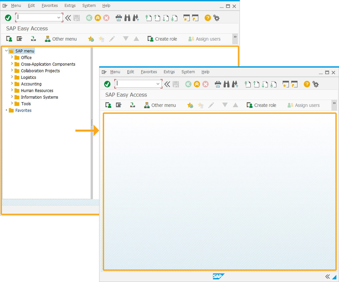 - Enter the clearscreen(); command to delete the unnecessary screen elements on the SAP Easy Access screen, as shown in the following image.