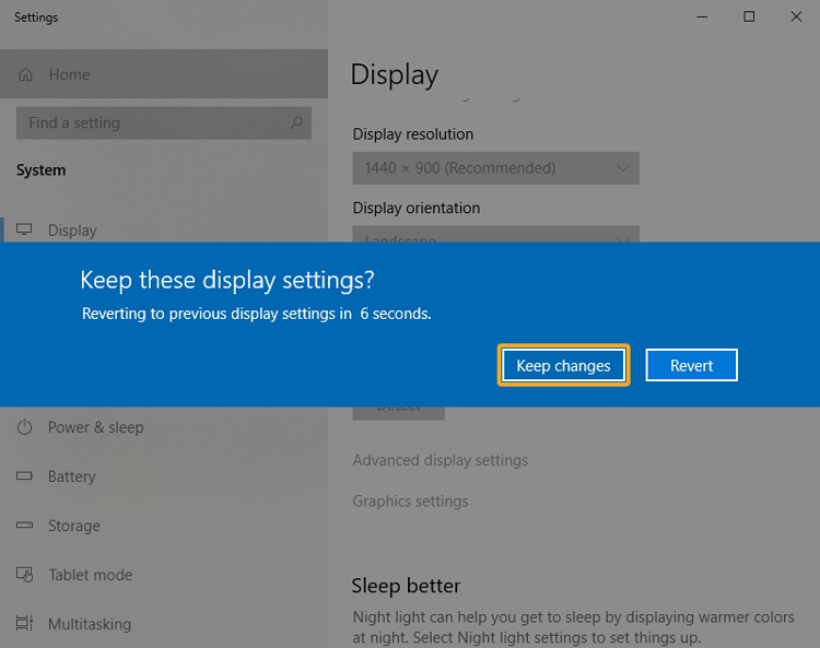 2. Then, click Keep changes to apply the selected resolution as your computer's display setting.