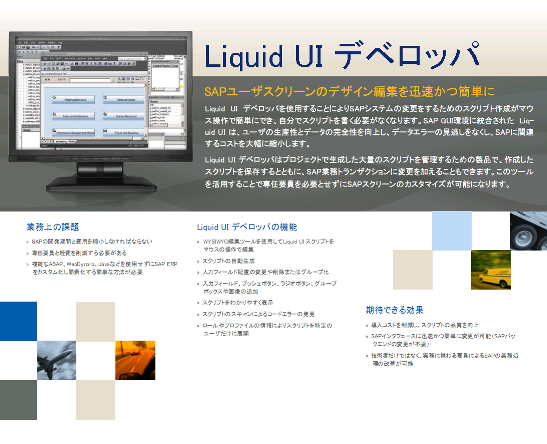 Liquid UI のカタログをご希望の場合は、以下のフォームにお客様の情報をご記入ください。記入後に「送信」ボタンをクリックしていただくと自動的にダウンロードページへ移動します。