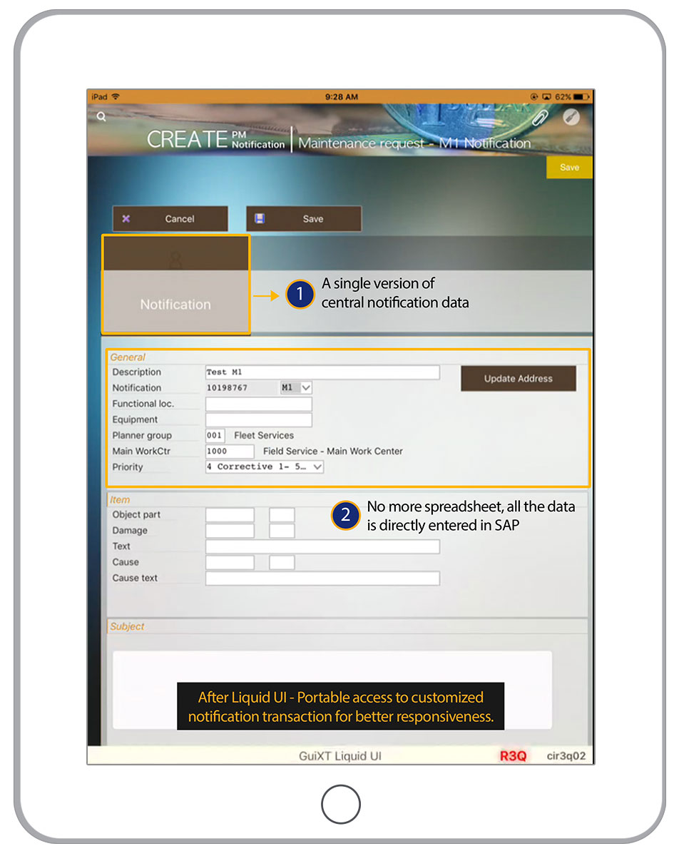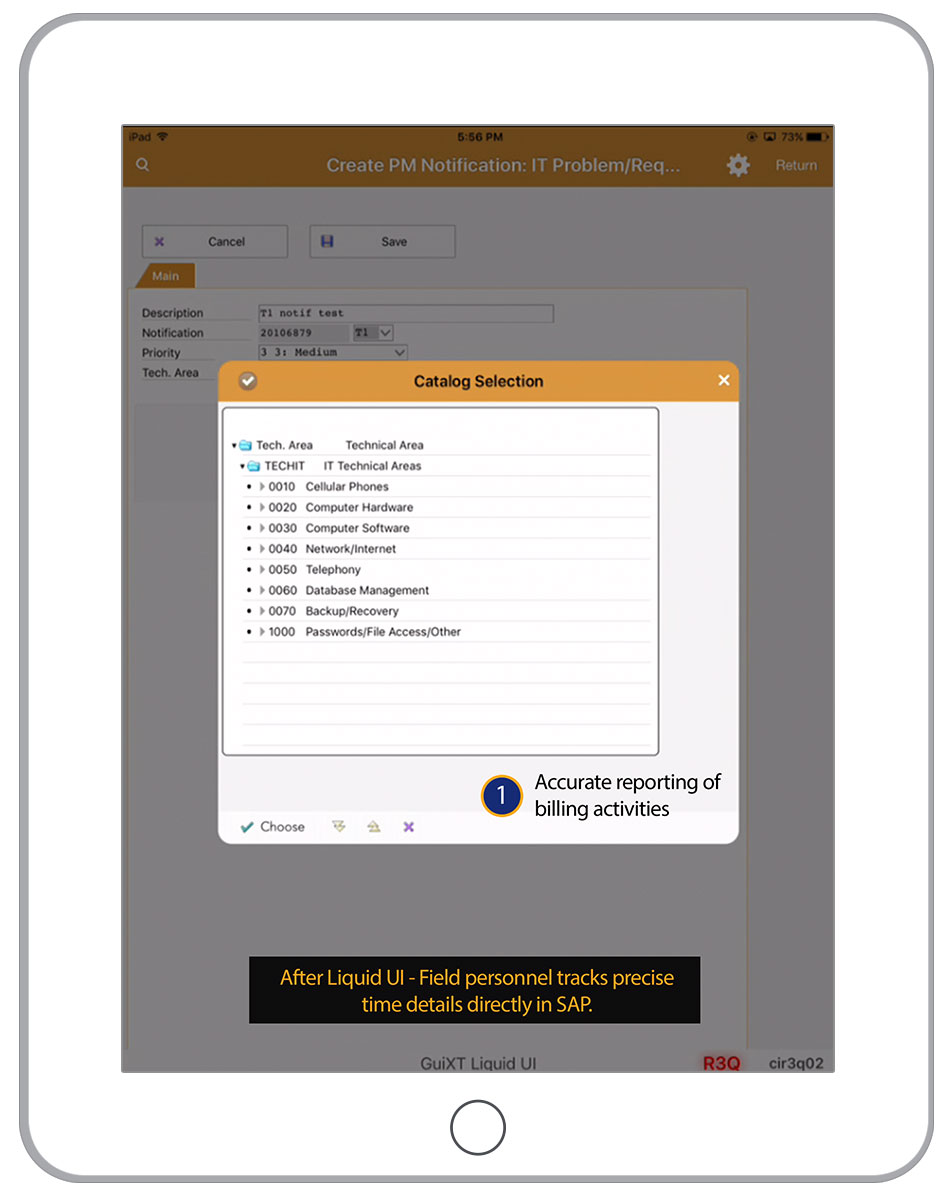 • Liquid UI for iOS enabled better visibility into notification data with which any changes are directly entered into SAP.