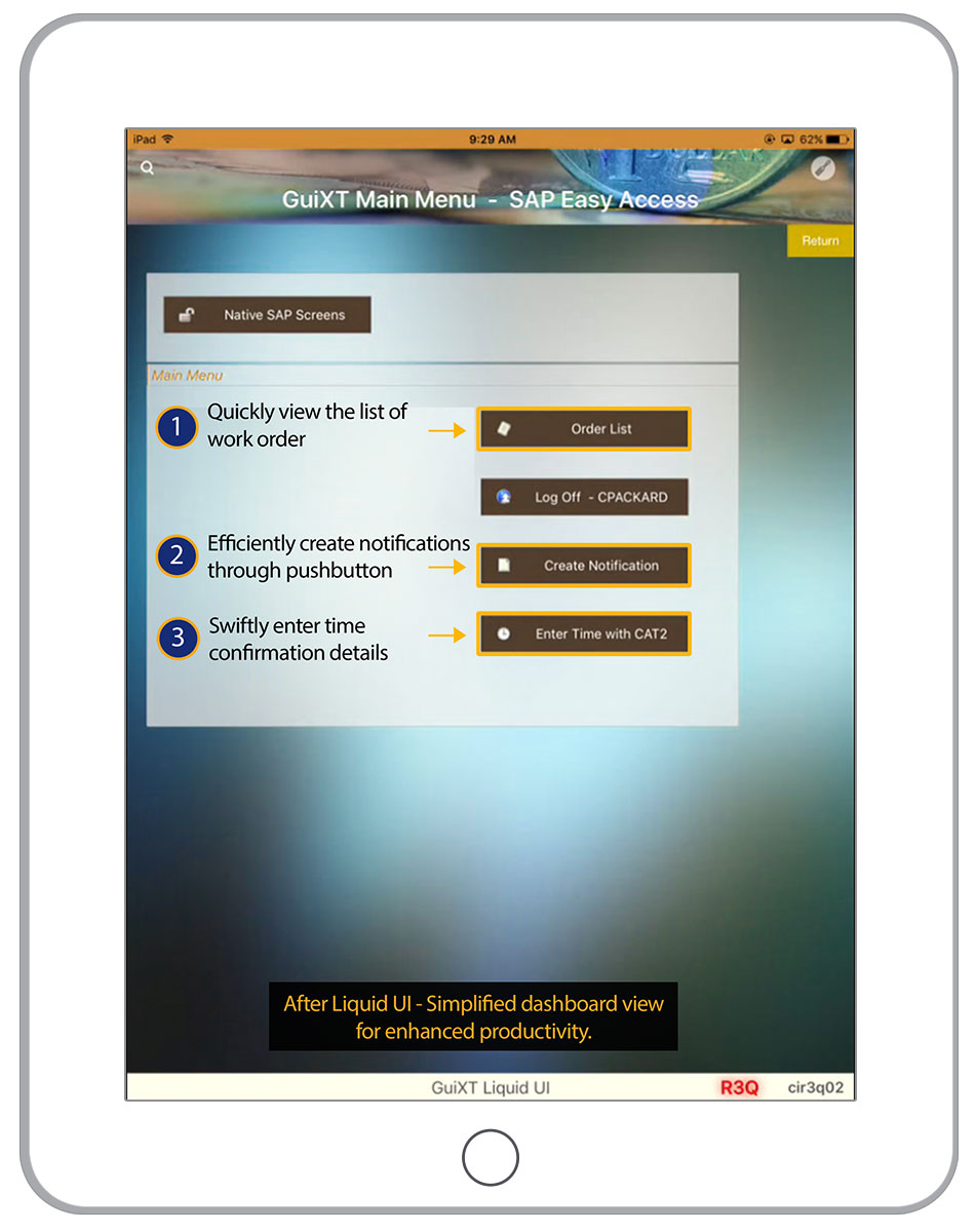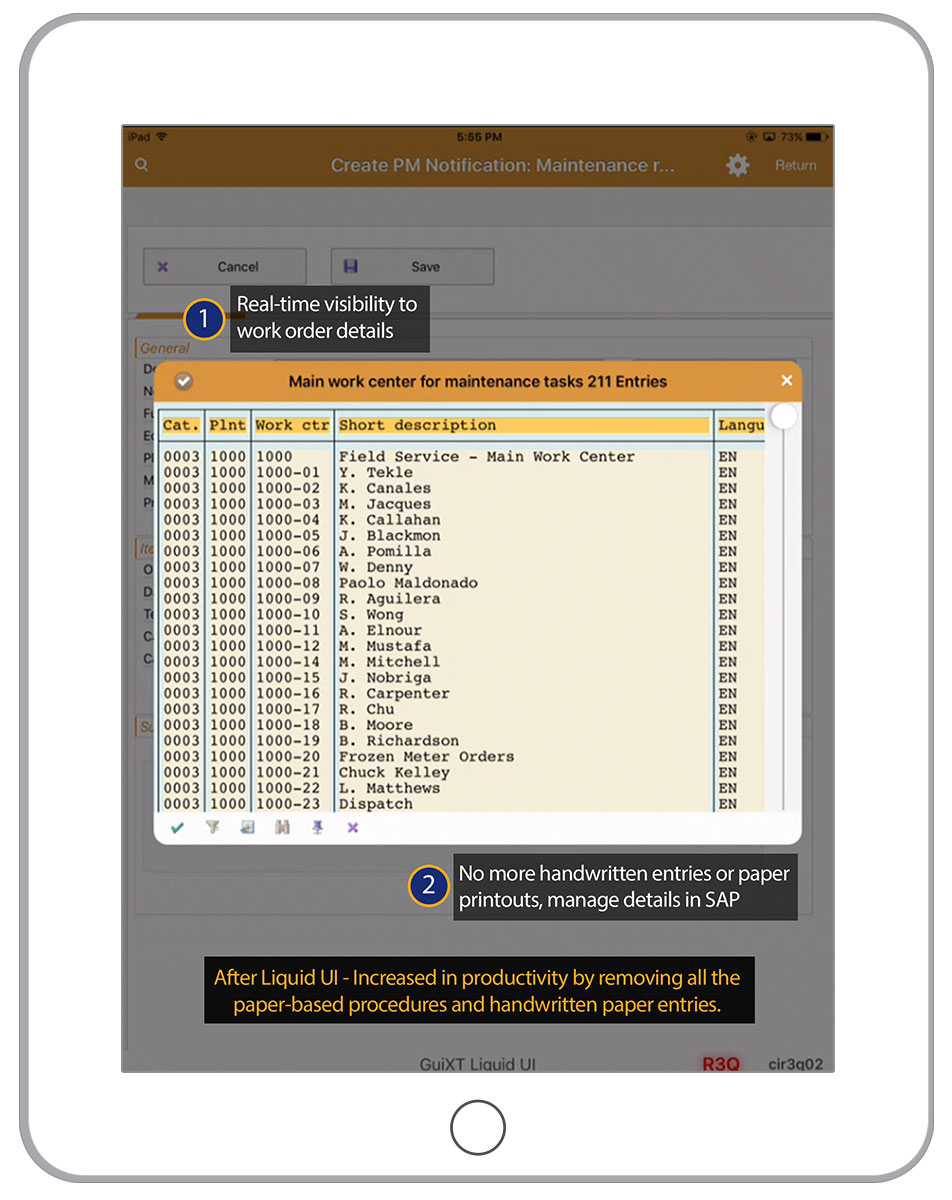 • With Liquid UI, field personnel now have real-time access to SAP from which they can enter details directly in SAP, send work confirmation emails and automate data entries using barcode scanning.