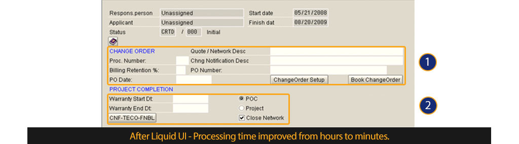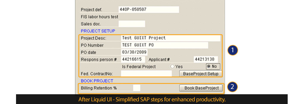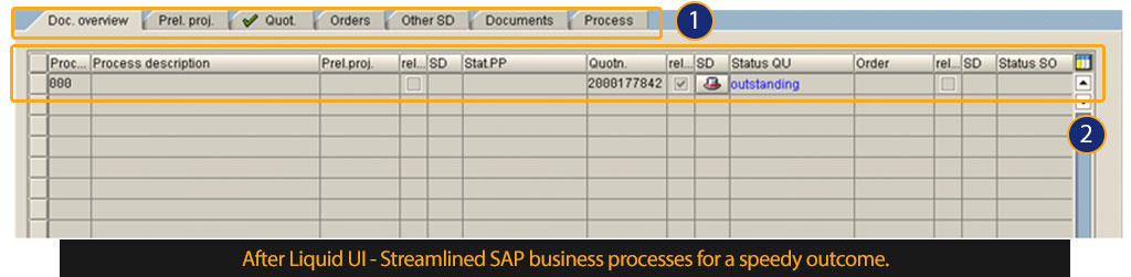 • Liquid UI for SAP GUI consolidated Navigator, Quotation and Project Builder screens into one screen, providing rapid navigation and eliminating redundant data entries.