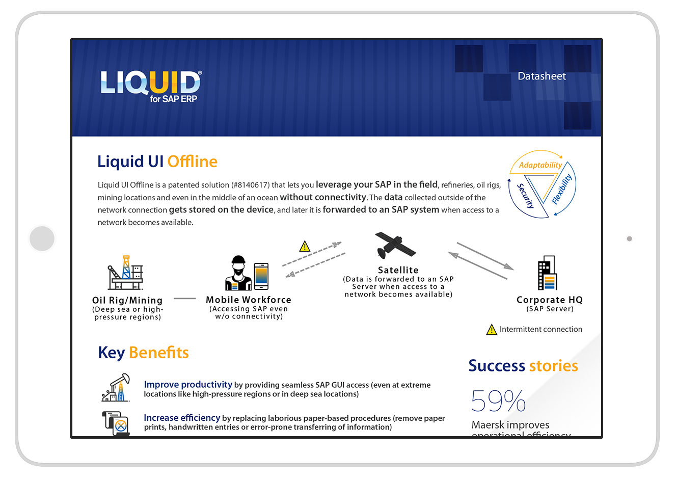 Complete and optimized access to your SAP even in intermittent connectivity. Liquid UI's patented offline technology allows you to continue working in deep pressure environments with unreliable connections.