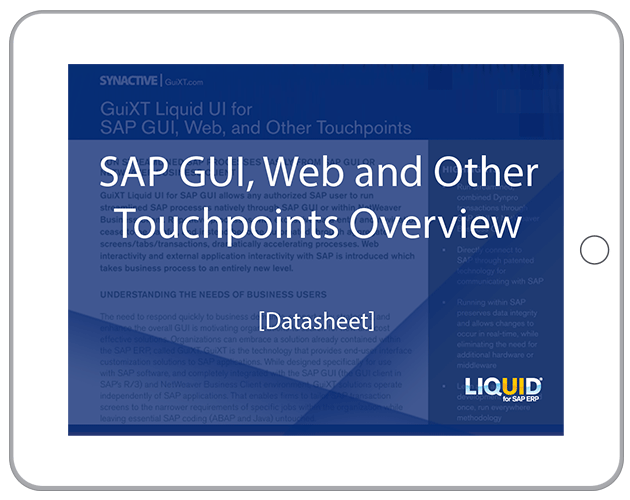 Liquid UI for SAP GUI allows you to run streamlined SAP processes natively through SAP GUI, Web or within NetWeaver Business Client.