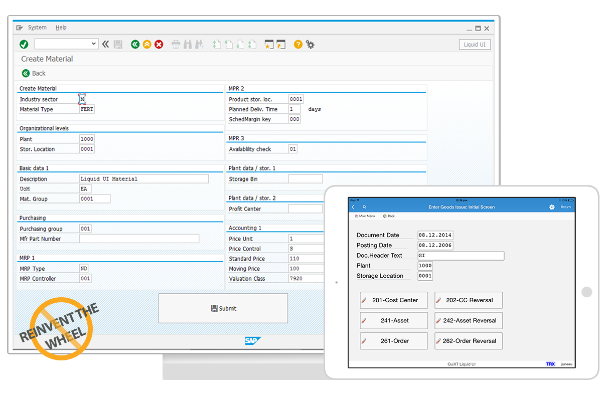 Liquid UI for SAP GUI - SAP MM - Enter Material Details