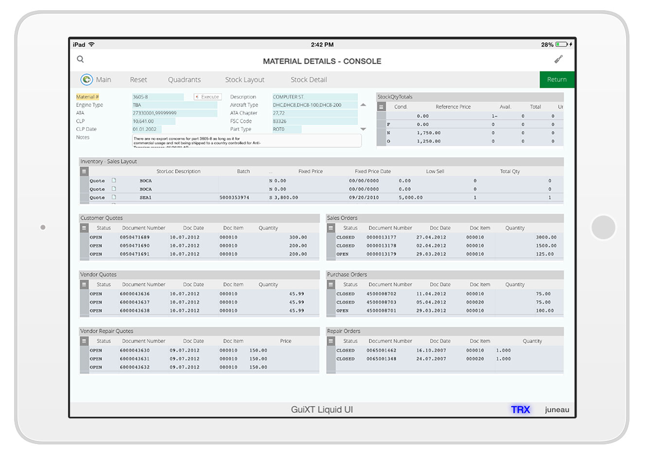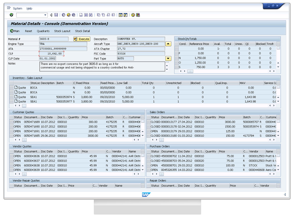 MM Console provides fast answers to daily questions: How many sales orders are associated with a material? How many purchase orders include this material? How many customer quotes have been provided for this material? Plus, the business activities keep a record of any interactions associated with this material.