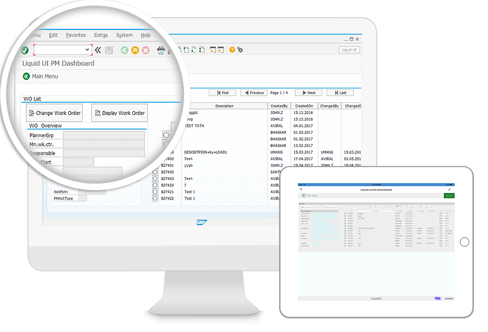 業務に関連するすべての情報を1つのビューに表示することが可能になります。販売レポートや設備の情報を瞬時に入手することも可能になり、さらには外出先から作業指示、通知、見積もり、顧客情報、またはその他の関連する情報にリアルタイムでアクセスすることもできるようになります。Liquid UIの活用により、これらのSAP簡素化のニーズが満たせるのです。