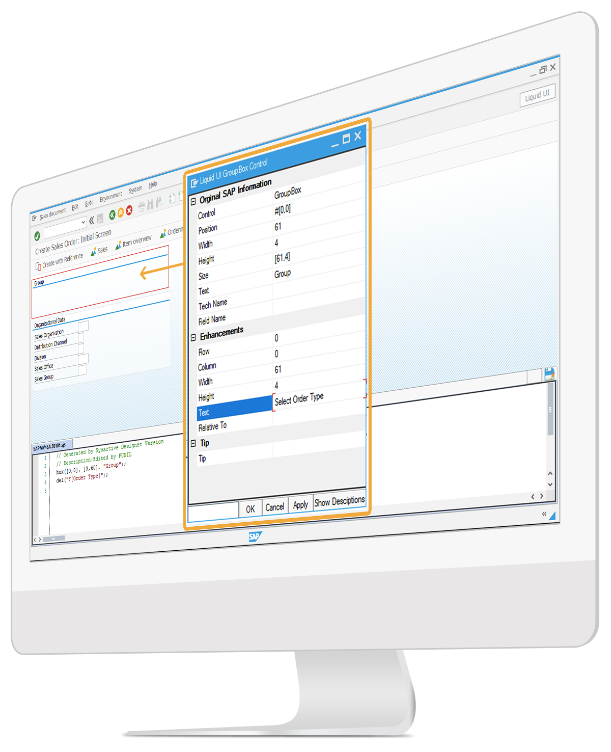 Liquid UI インプレースエディットを使用すると、コーディングなしでマウスのクリックだけでSAPをカスタマイズすることができます。マウスクリック以上の作業が必要となる場合も、即座に使用が可能なスクリプトエディタを使うことができます。カスタマイズされたスクリプトのすべてを、iOSやアンドロイドなどのモバイルデバイスに簡単に拡張できます。