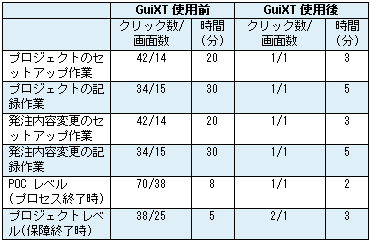 GuiXTを使用した後は、業務処理が簡素化され、重複したデータ入力や不要フィールドを削除することで作業効率が向上した。