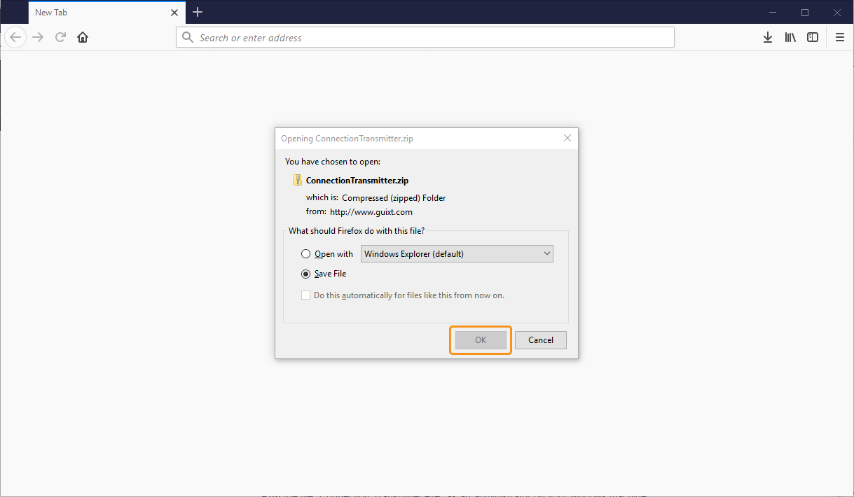 Open the link, liquid-ui.com/transmitterdownload in the web browser, and then click OK.