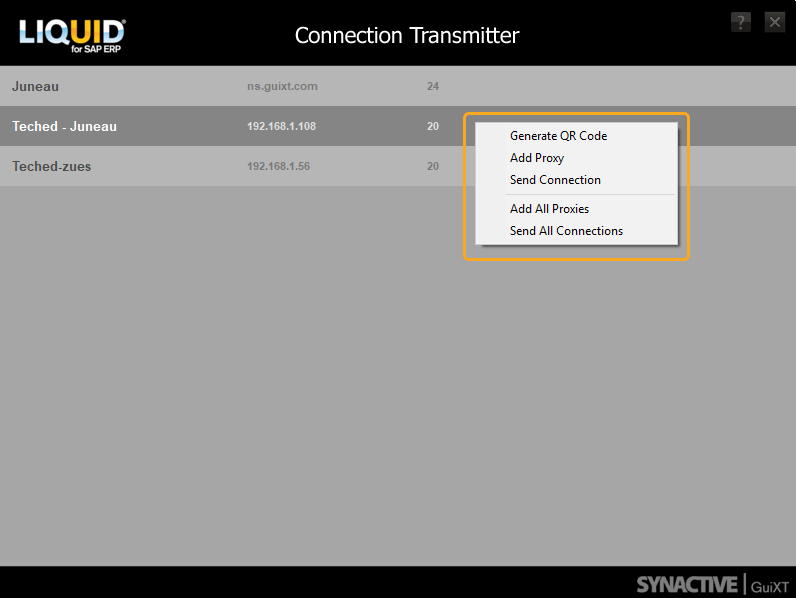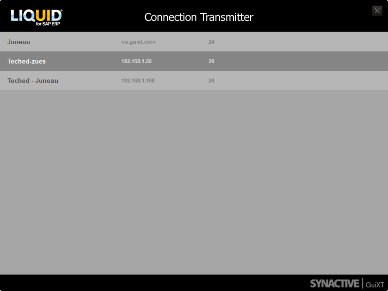 Connection Transmitter allows you to add existing SAP connections from the SAP GUI to your Android, iOS, and LAMP accounts without using manual keying parameters. You can also add proxies of the existing SAP connections to the Liquid UI Server Configuration file (sapproxy.ini) using this tool. This tool helps you to add existing SAP connections very easily, thus avoiding entering connection details.